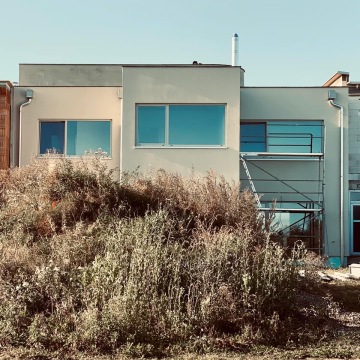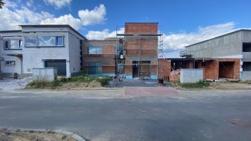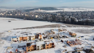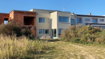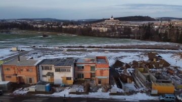Novostavba řadového dvoupodlažního rodinného domu z cihel s tepelnou izolací uvnitř, plochými střechami, výraznými atikami a konzolou nad vstupem je součástí nové čtvrti Klafar ve Žďáře nad Sázavou. Dům uvnitř skrývá půlkruhové železobetonové schodiště, prosklenou jídelnu, bazilikální světlíky a další atypické prvky.