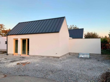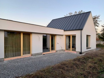 Novostavba rodinného domu s grafickým atelierem. Celá stavba je umístěna do vzrostlé zahrady, kterou bylo nutno při realizaci chránit a zachovat. Konstrukčně jde o kombinaci klasického zdiva s minerální vatou, železobetonových štítů a stropů, sedlové střechy, ploché střechy, konzol nad vstupem a v zahradě, kruhových oken ve štítech, otevřených prostor, zkrátka tradiční a moderní prvky reagující na zadání majitelů domu a pozemek.