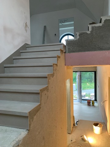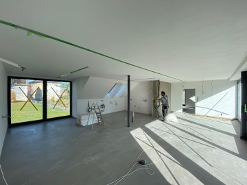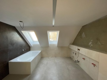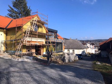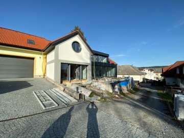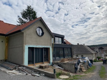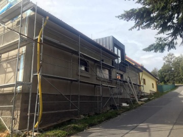 Přístavba rodinného domu k objektu garáže v rámci skupiny dalších dvou rodinných domů. Dům je vsazen do svažitého terénu, doplňuje, vymezuje a uzavírá skupinu domů do tradičního dvorce. Konstrukčně se jedná o kombinaci červených cihel, zateplení fasády minerální vatou, stropy skládané z Miako tvarovek, střecha sedlová s dřevěným krovem, skládanou krytinou, vikýře s plochou střechou jsou povrchově řešeny falcovaným plechem.